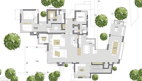The rest house aims to establish a direct connection with the landscape, as well as a dialogue with its regional context through a contemporary vocabulary. In that matter, the house shows in a transparent and permeable way, and at the same time, expressing itself in an irregular geometry that respects the natural surroundings and harnesses the uneven terrain in its favor, coated with local materials and rustic touches which were executed with precision. The irregular floor level geometry gives astonishing views from any angle of the house, creating a visual connection through spaces, framing the natural environment. Giving each one a specific function that contributes to making you feel a different atmosphere within the house.
