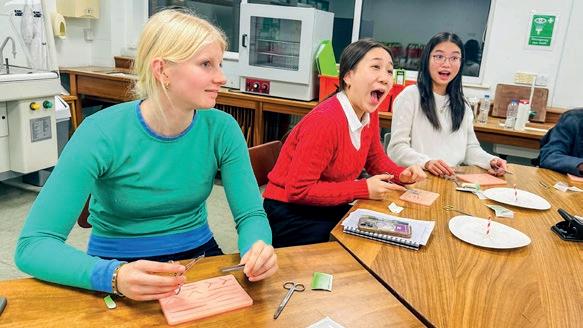 On Wednesday, a very excited bunch of future medics and vets learnt to perform basic suturing stitches.