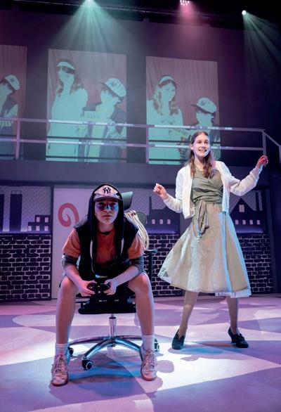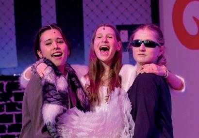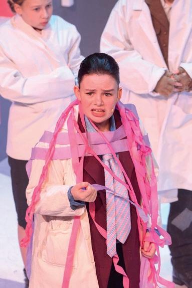 'I’ve got a golden ticket!', exclaims the Bavarian duo, Augustus Gloop and Mrs Gloop, played with true aplomb by Alex (Yr10) and Dixie (Yr9). Greta’s Veruca Salt (Yr10) gracefully dances her way to centre stage, demanding more and more from her yesman father, Mr Salt, played boldly by Rhea (Yr12). Rotimi (Yr10) gives a powerhouse performance as the gum-chewing diva, Violet Beauregarde, accompanied by her dazzling Divas, while Sorcha (Yr10) hilariously portrays a Mr Beauregarde, who puts Kris Jenner to shame with his stage dad energy. Joy (Yr11) brings a rebellious spark to the role of the media-obsessed Mike Teavee. Alongside them, Jemima (Yr10) shines as Mrs Teavee, portraying the quintessential jittery housewife.