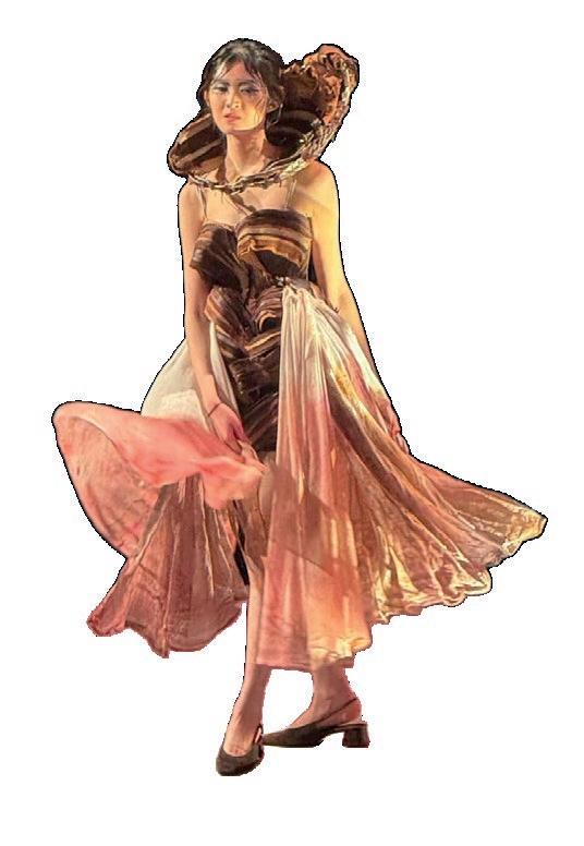 Esther’s innovative design transformed willow branches, leather off-cuts, and recycled clothing into a striking piece of wearable couture. By turning discarded materials into wearable art , her creation highlighted the vital role trees play in sustaining our ecosystems. The garment beautifully captured the complexity and fragility of nature, serving as a powerful reminder of the importance of protecting our environment while celebrating the creative connection between fashion and sustainability.