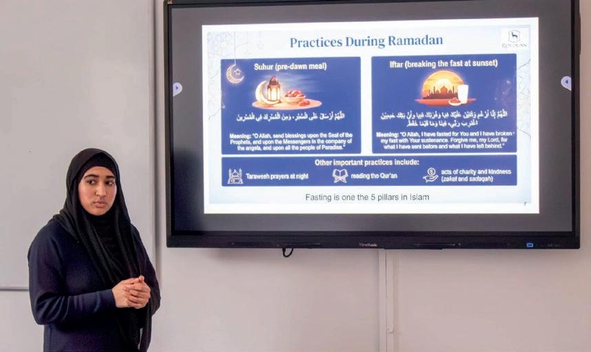 Thank you to Sana'a in Year 11, who presented an academic lecture to her peers about Ramadan. She presented the context of the holy ninth month of the Islamic calendar, and the significance it holds for all Muslims, tracing it back to its historic origins. This year, Ramadan, which follows the lunar calendar, began on 17 February and will end on 19 March.