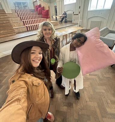 This week saw our Year 13 A Theatre Studies students perform to the A Level examiner. They performed two half-hour extracts from two female contemporary playwrights. Tegan, Mila, and Eva performed in a new play that involves three young women and how their lives intertwine with the beheading of Anne Boleyn, while Cherrie, Daisy, and Lucy performed Playhouse Creatures, a wonderful exploration of the first female actors during the restoration period. They were really pleased with how the examined performance went, and I am really proud of all their hard work, making it a great way to round off the term!