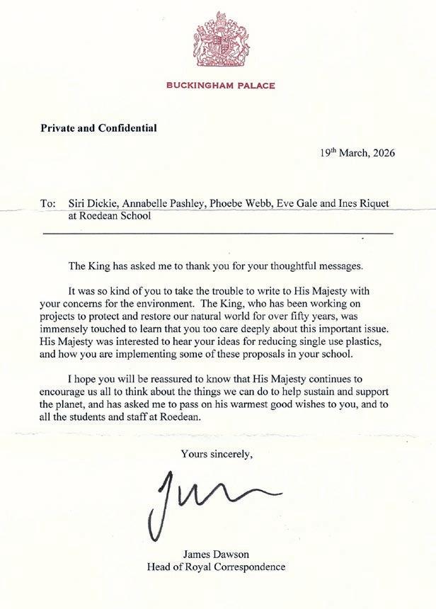 Students at Roedean were delighted to receive a letter this week from Buckingham Palace in recognition of their environmental efforts.