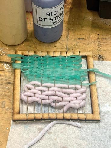 The bio-yarn, made primarily from sodium alginate, is biodegradable and environmentally friendly. During the sessions, students experimented with producing and using this innovative material, applying it creatively by weaving it into postcards. We also discussed its wider potential applications, including crochet and knitting, highlighting how such materials could play an important role in the future of the fashion industry.