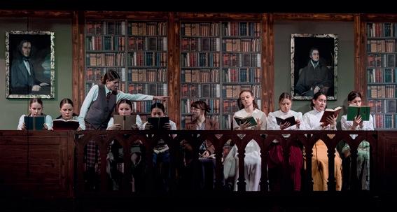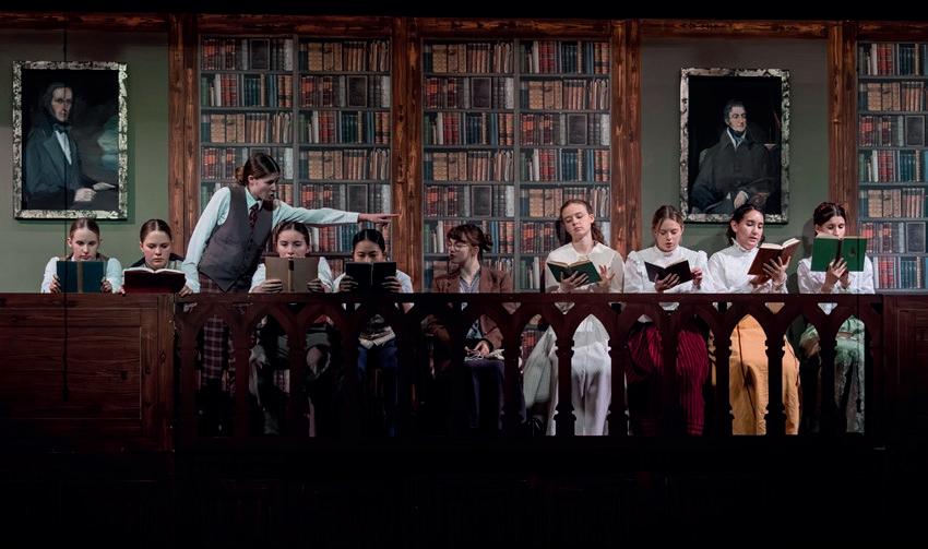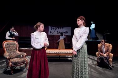The male students were skilfully portrayed with an initial boyish charm, that soon faltered when faced with the reality of being educated with the young women. Some were inclusive-minded, such as the love-struck Edward, played by Astrid, Heli's Ralph, who passed love notes through library books, and Katie's supportive and brave Will, who went against the threats of the others. Meanwhile, the privileged but plain-speaking Holmes, played by Rosa, finally rejected the cruel antics of Nathania's Lloyd, who was destructive in his hatred of the women obtaining a formal education.