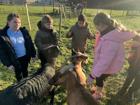 The children learnt how to build a fire with Mrs Finn, using flint and steel and cotton wool, ably supervised by our Year 12 CAP students. They also learnt about the different breeds of sheep we have on the Farm, and about what a baby goat is called, and why their eyes have rectangular pupils. The children loved being able to pet and feed them too – animals certainly have the ability to create that feel-good factor.
