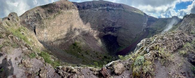 On Saturday morning, we scaled the main cone of Mount Vesuvius, which so dominates the whole Bay of Naples region. As we circumnavigated the vast crater with our volcanologist guide, the clouds finally melted away, revealing the lush green landscapes below us leading out into the blue bay beyond.