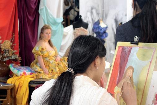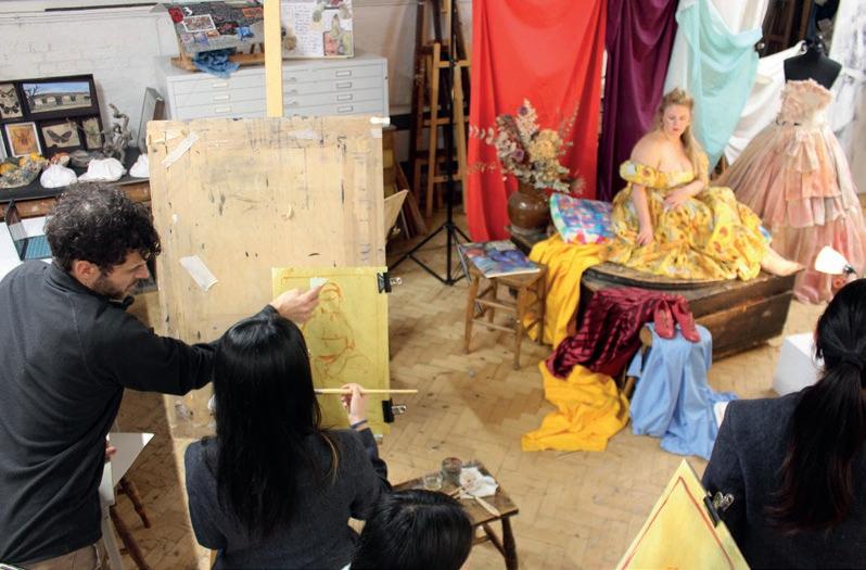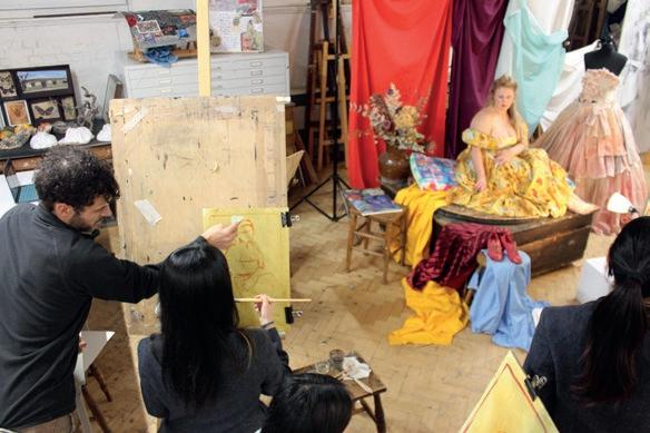 Our students were inspired by Tim’s clear and insightful teaching, as he demonstrated techniques in colour mixing, tone, and composition, explaining how to use oil paint in varying saturations to achieve depth and vibrancy. Working directly from a life model in a specially designed set, the students explored the challenges of painting from observation under Tim’s expert guidance.