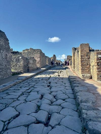 In the afternoon we dropped down into that landscape to tour the atmospheric remains of the historic city of Pompeii, marvelling again at the levels of restoration following the dramatic pyroclastic eruption of Vesuvius in 79AD.