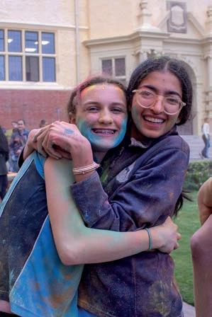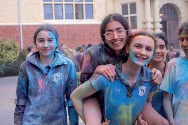 But this year there was a twist! To mark the Hindu festival of Holi, which was earlier this month, the finale of the Year 8s' show included coloured paint, which they threw at each other in the Front Quad. It was just brilliant, and they had a lovely time – well done to everyone involved!