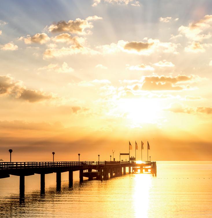 Standesamt Grömitz | Kirchenstr. 11, 23743 Grömitz, Tel. 04562/69-237, www.groemitz.de Heiraten meterhoch über dem Wasser: Das Ostseebad Kellenhusen (www.kellenhusen.de) lockt mit Hochzeiten auf seiner neuen 305 m langen Seebrücke. Sie bietet optisch einen harmonisch fließenden Übergang von der neu gestalteten Flaniermeile „Lady Prom“ über den Seebrückenvorplatz bis auf die Ostsee. Die Trauungen werden vom Bürgermeister durchgeführt. Für das richtige Ambiente während und nach der Zeremonie auf der Seebrücke sorgt der Kurbetrieb Kellenhusen, Tel. 04364/4975-14. Sollte die Witterung einmal nicht mitspielen, steht direkt im Kurzentrum ein gewidmeter Raum zur Verfügung. Auf der 398 Meter langen Seebrücke im Ostseebad Grömitz können sich echte Grömitz-Fans an ihrem schönsten Tag im Leben das Ja-Wort geben. Der Brückenkopf steht zukünftigen Eheleuten für einen unvergesslichen Moment bereit und ermöglicht eine Freilufttrauung mit direktem Blick auf die Lübecker Bucht. Heiraten unter Wasser? Eine außergewöhnliche Attraktion für eine Trauung ist die Tauchgondel Grömitz (www.tauchgondel.de) mit Platz für bis zu 30 Personen. Hier können Sie sich trockenen Fußes und mit Blick auf die Unterwasserwelt das Ja-Wort geben. Durch große Fenster kann das bunte Treiben der Meeresbewohner und Pflanzen an den Felsen beobachtet werden.