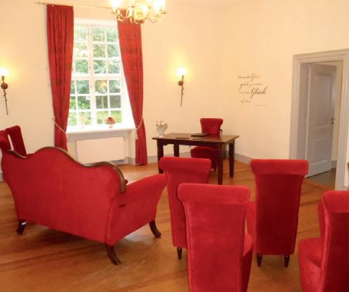 Amt Lensahn | Eutiner Str. 2, 23738 Lensahn, Tel. 04363/508-24, www.lensahn.de Trauungen auf dem Gut Petersdorf (www.gutpetersdorf.de) sind möglich im Roten Salon des Herrenhauses mit Platz bis zu 25 Personen und im Freien im Grünen Trauzimmer – inmitten der Natur kann unter dem Blätterdach der jungen Lindenallee geheiratet werden. Der weitläufige Park mit Rosen, altem Baumbestand und Burggraben ist wunderbar geeignet für Fotos im Anschluss an die Trauung. Nach vorheriger Absprache mit dem Standesamt sind Trauungen auch am Samstag möglich. Weitere Trauorte sind der Museumshof in Lensahn (www.museumshof-lensahn.de) und das Hofcafe Lunaus (www.lunaus.de) in Kabelhorst.