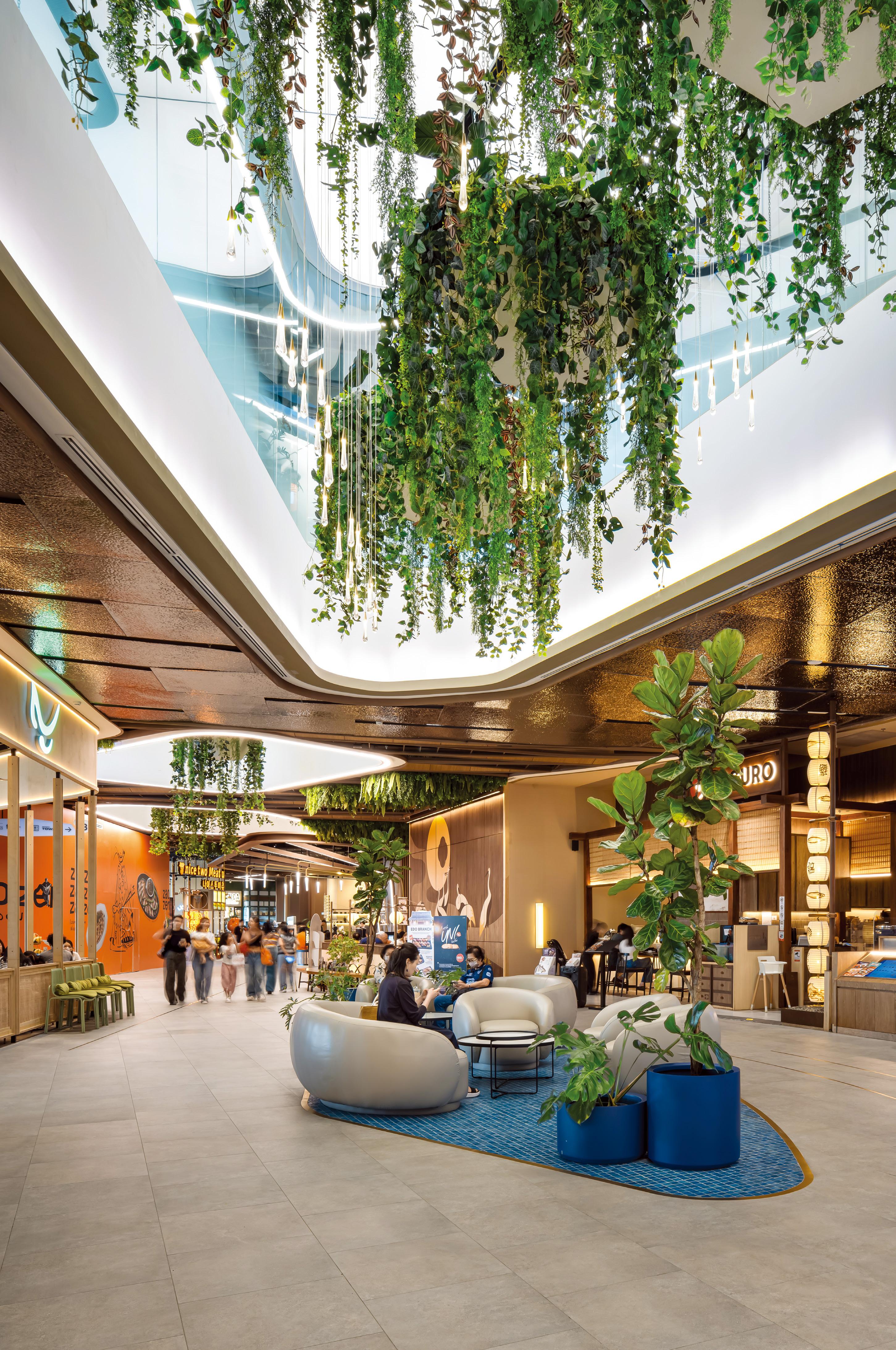 Above, the ribbon of greenery seamlessly connects to a public park via a flyover, fostering outdoor interactions between patrons and the city’s natural landscape. Lined with restaurants and cafés, the ribbon serves as a multipurpose social space, blending private business with public engagement.