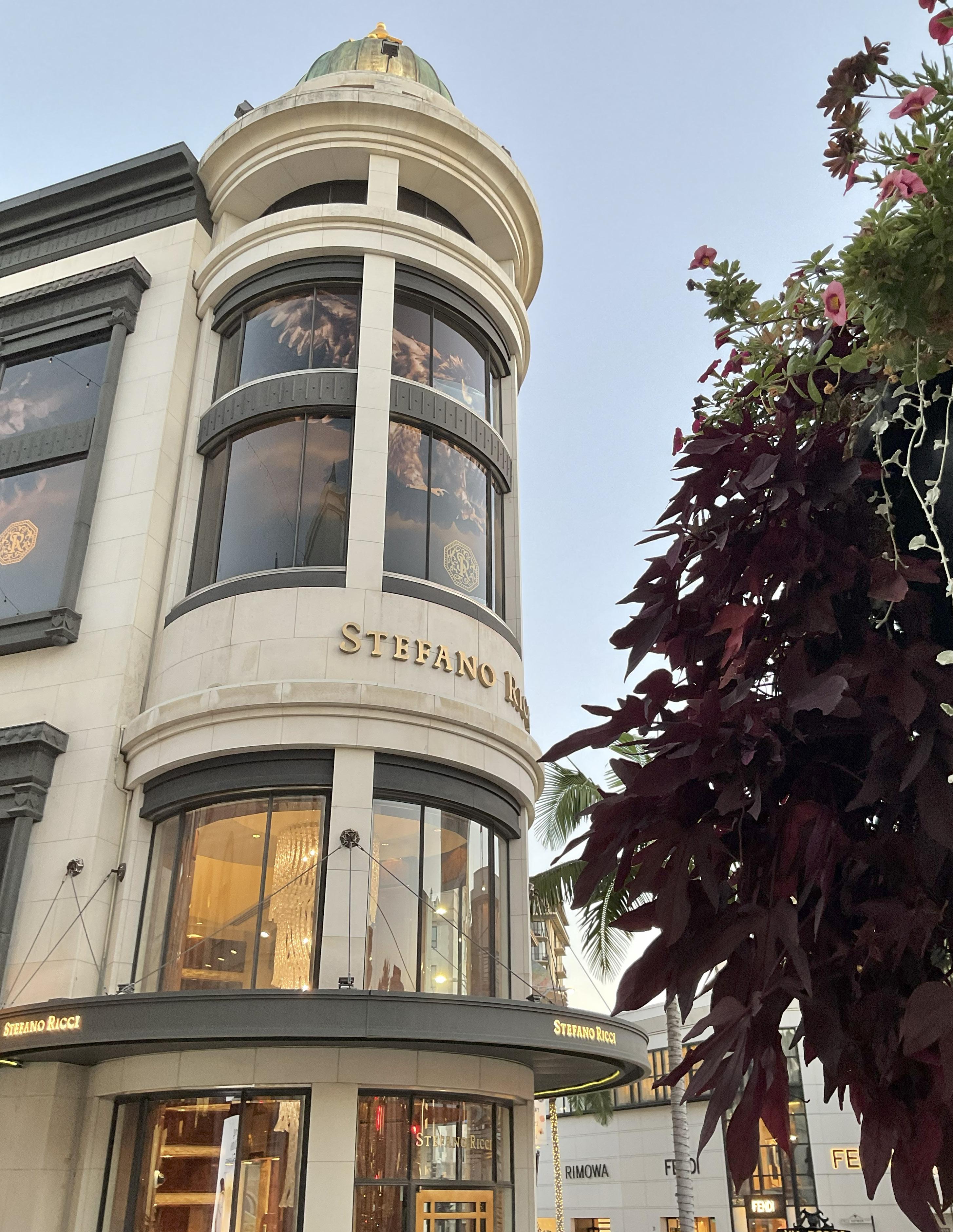 Rodeo Drive, Beverly Hills 90210, is always a beautiful street to walk or drive in the evening when the stores come alive in lights. In the following few pages, I take you on a photographic walking tour of Rodeo Drive as I snap photos of several beautiful storefronts.