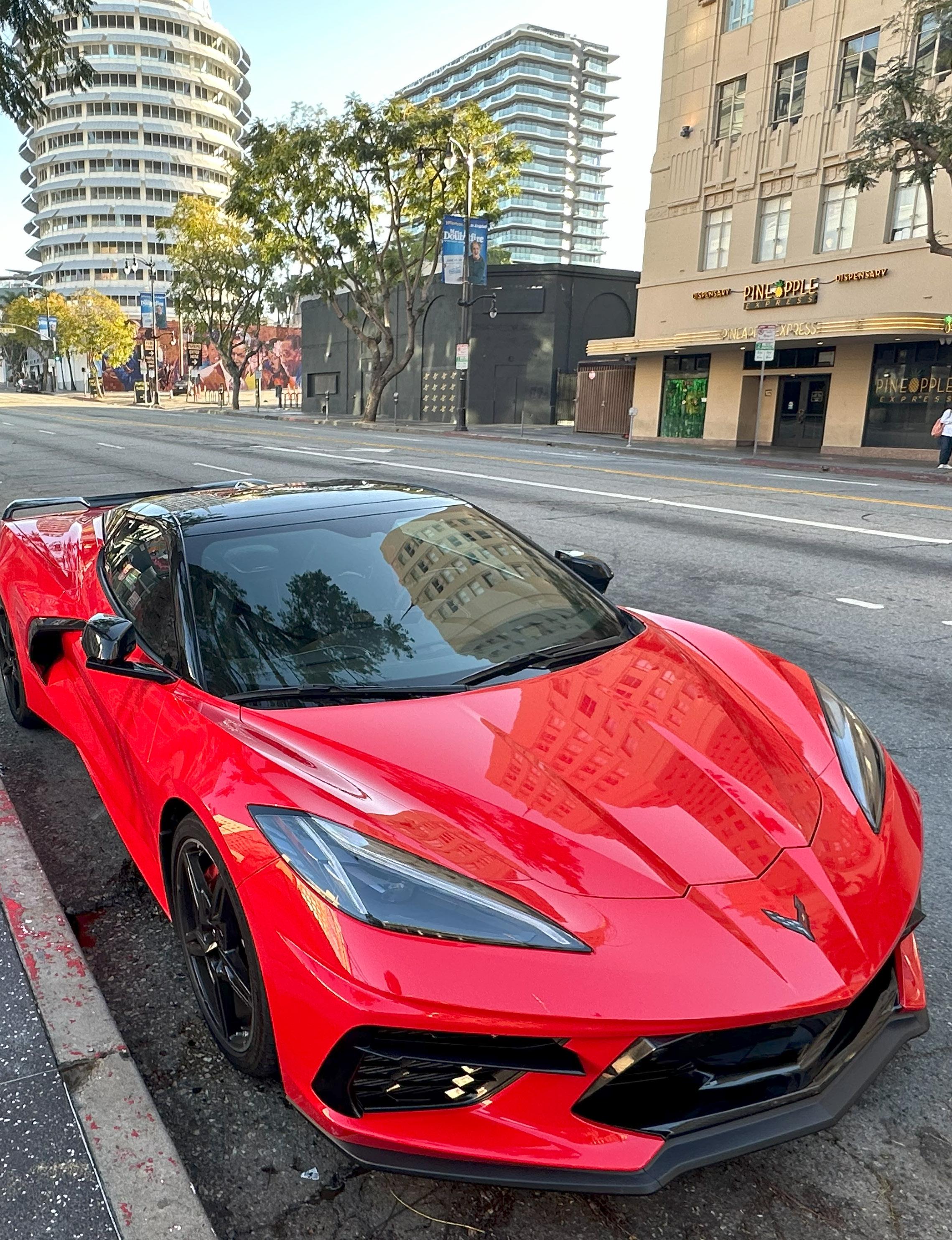 I love Hollywood. I love cars. I love driving ROGEE1, my Torch Red 2023 C8 Corvette Stingray Convertible around town in Hollywood and Beverly Hills. Here are a few photos in Hollywood.