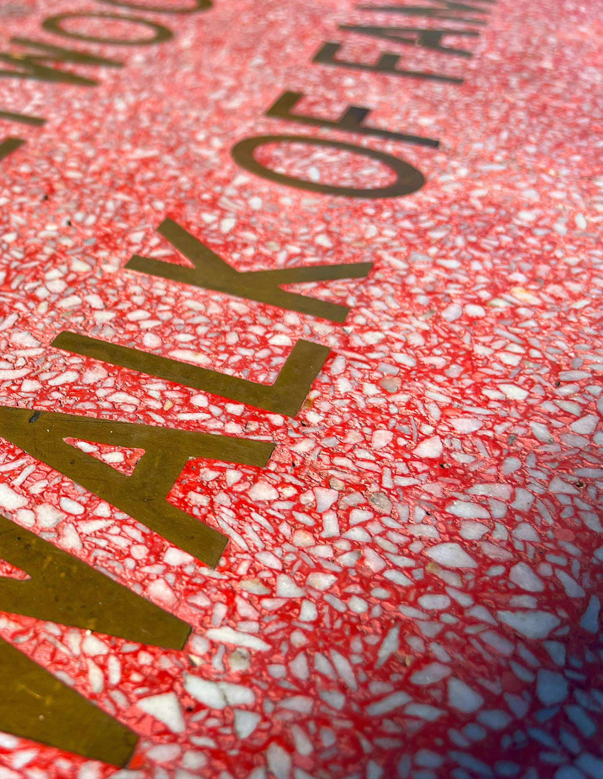 I myself, I periodically enjoy walking the full length of the Hollywood Walk of Fame, which eastbound, starts at La Brea Ave. & Hollywood Blvd., and ends at Gower Street & Hollywood Blvd.