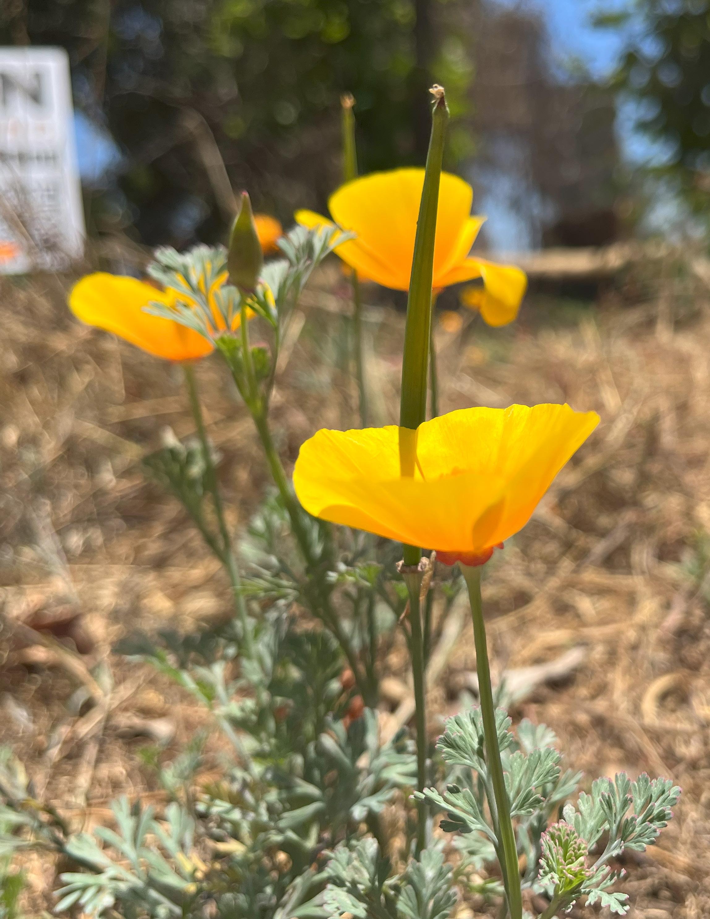 A FEW MONTHS AFTER THE FIRE, CALIFORNIA POPPY FLOWERS BLOSSOM IN THE PALISADES.