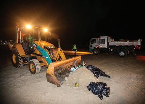 Caminhões, tratores, e rastelos serrão utilizados na faixa de areia para retirar tudo o que não combina com a natureza, o