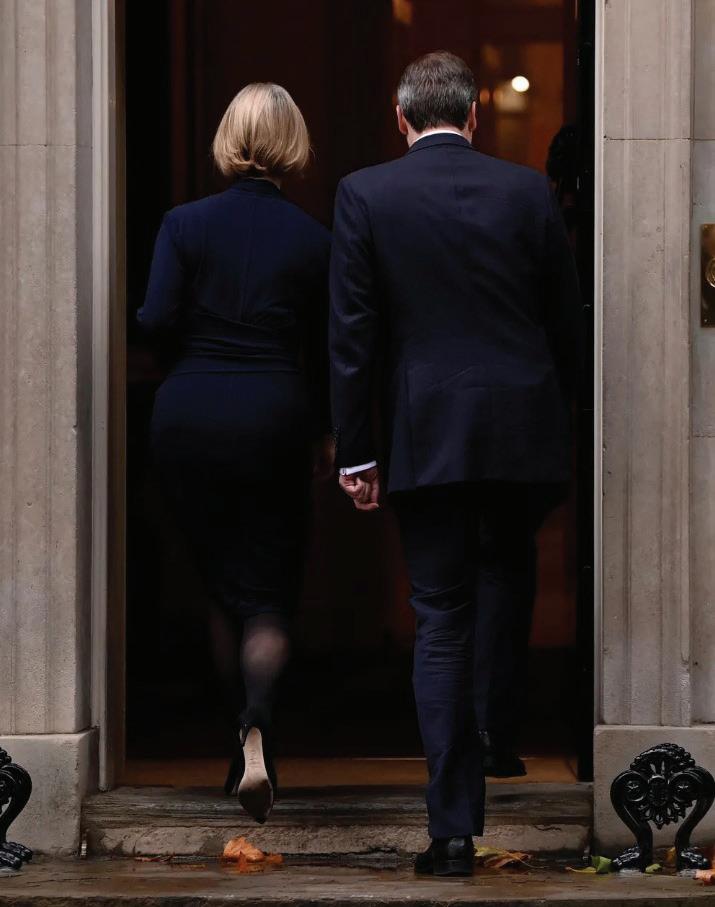 a Primeira ministra britânica, Liz trUss, acomPanhada de seU marido aPós anUnciar renúncia do cargo, em 20 de oUtUbro de 2022