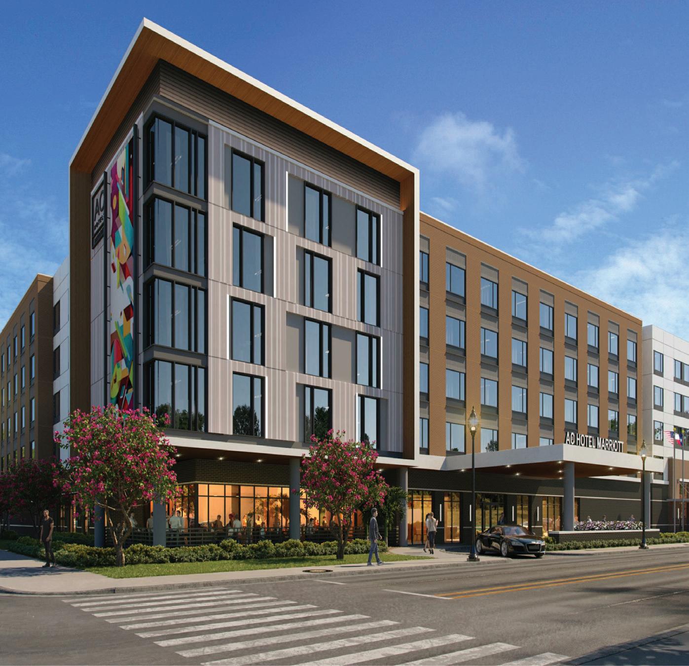 The scope of the new Marriott AC Waco includes 107,000 SF of hotel space, a 111,575 SF parking garage and a 23,370 SF commercial retail building with a rooftop patio. At completion, the five-story hotel will have 182 rooms. Outdoor amenities at the hotel will include a swimming pool with private trellis cabanas and a courtyard complete with fire pits. The interior will boast extensive amenities including an inviting lobby, a ballroom, bar, fitness center, library, conference rooms, a full service kitchen and various dining options.