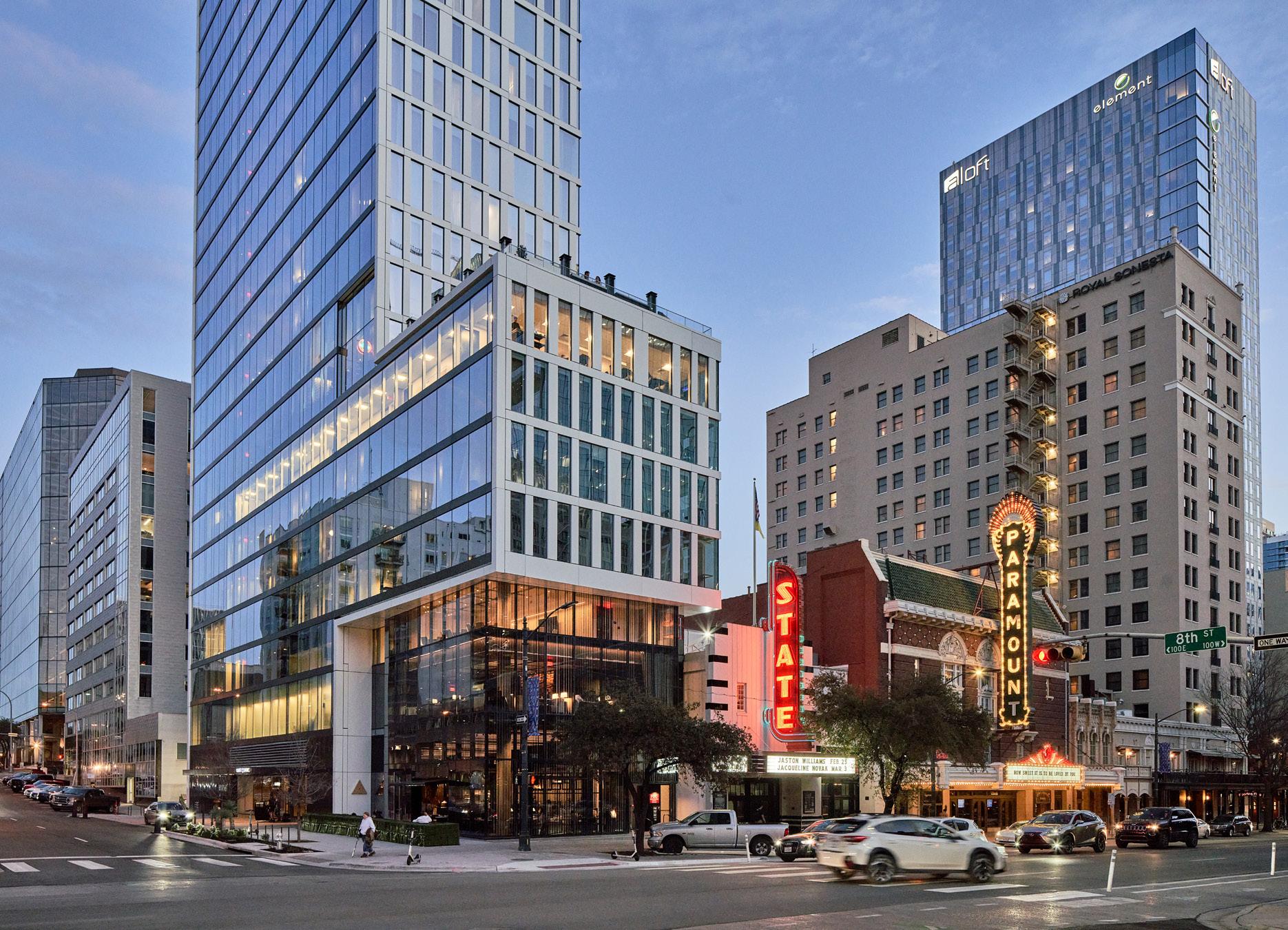 The Hyatt Centric is a 31-story high-rise hotel located on the corner of congress Avenue and 8th Street in downtown Austin. The project includes 246 guest rooms and amenities such as a 24/7 fitness center and 2,560 SF of meeting space. Levels 1 and 2 are dedicated to kitchen and restaurant space, and Level 8 features a rooftop cocktail bar and lounge with an outdoor terrace overlooking the city.