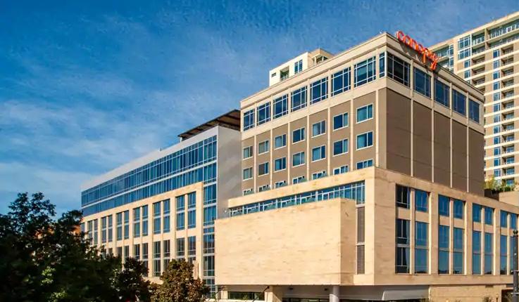 The new Cambria Hotel on Rainey street is a 260,000 SF 15-story building in the heart of the walkable Rainey Street Historic district. The hotel features 240 upscale guest rooms with a locally inspired contemporary design. In addition to a guest amenity deck, fitness center and pool, the top level of the building will be home to a rooftop bar and lounge with views of downtown Austin.