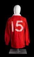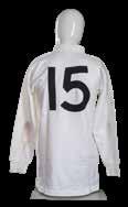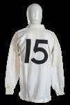 Jersey match worn by Robert Hiller (b.1942), traditional all-white, embroidered three colour rose on stem with toned leaves, black felt number 15 to reverse, Umbro International label to the interior (size 42ins).