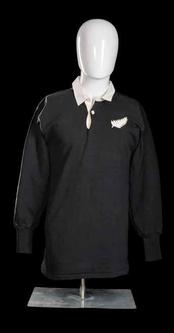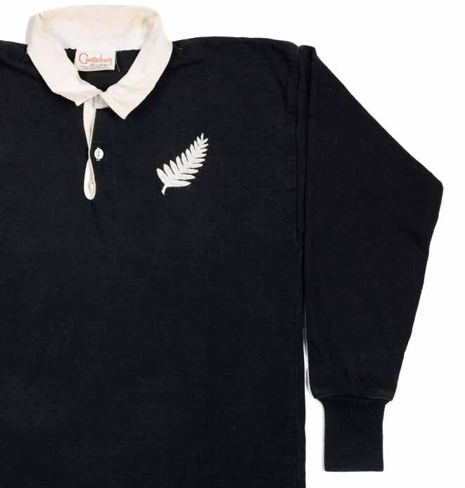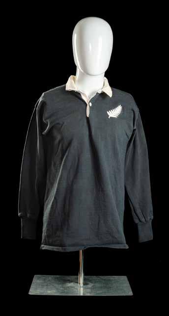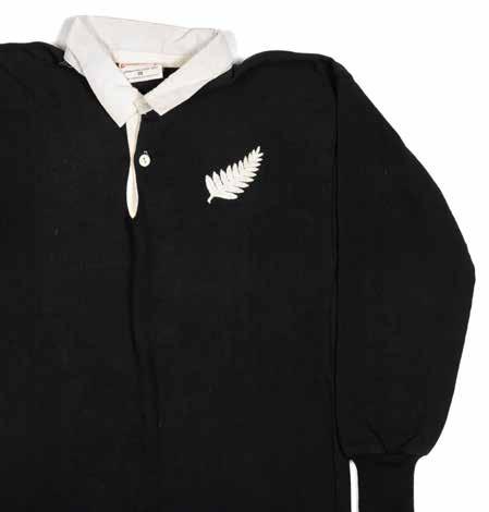 International Rugby Union jersey match-worn, in black with white collar, embroidered ‘silver fern’ and stitched number 15 to reverse, Canterbury label to inside collar. In good condition. To accompany, the player’s programme and dinner menu for Wales v New Zealand, 2nd December 1972, which is in excellent condition.