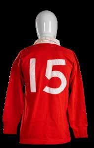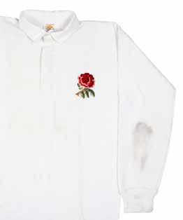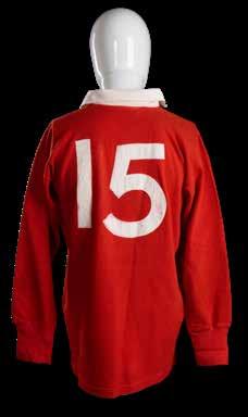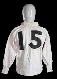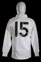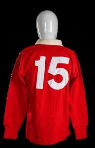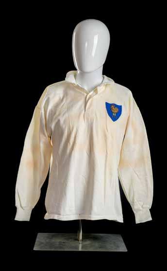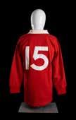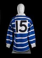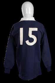 Jersey match-worn by JPR Williams, bears crest of the four unions with the English rose in indigo rather than red (1974) and with two labels to the interior for Umbro and Lillywhites as was the case in the 1971 tour. Stitched white number 15 to reverse. Red dye has run to white areas.