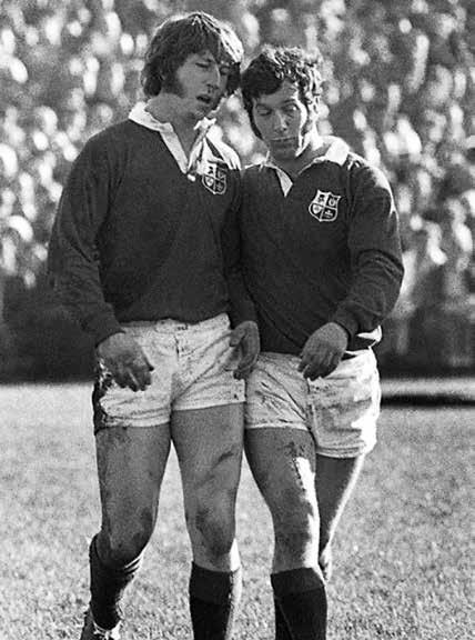 “We had played to our strengths in the first two tests on the ‘74 Lions tour. The first test was in Cape town in the mud and we won narrowly through our forwards and Gareth. The second test was up in Pretoria, with higher altitude and hard burnt grass, which was why I bandaged my knees to prevent grass burns. There was always a bit of bandage left over to keep my hair out of my eyes. It was expected by the SA press that we wouldn’t do well on the high veldt… how wrong they were. Benny and JJ did us proud with their side stepping and skill. I had played with both of them for Wales at junior level (u15, u18) and I knew what they could do. At the end of that match the crowd walked silently away So there was much expectation for us in the 3rd. Test, and