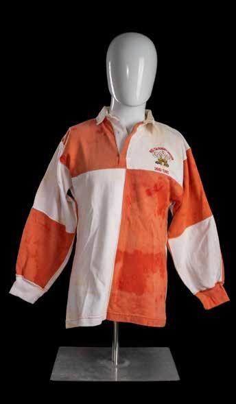A smaller Springbok jersey so would have fitted Ian McCallum or OA Roux (b.1947) during the British Lions series of 1974 but JPR’s family believe the jersey to have been worn by Roux and swapped after the Final Test as would have been the custom. Roux had a 12 stone frame for a size 38, as opposed to de Villiers’ much larger frame.