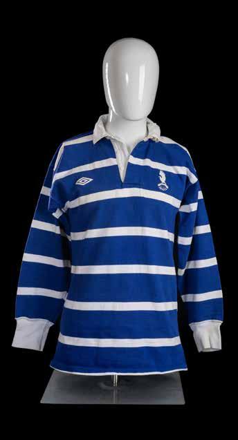 Jersey match-worn by Martin Sansot (b.1955) in blue and white hoops, printed Puma crest, felt number 15, stitched to reverse, label for Noceto Sports. The jersey from the famous tie of 16th October 1976 in Cardiff when a major upset was looking likely.