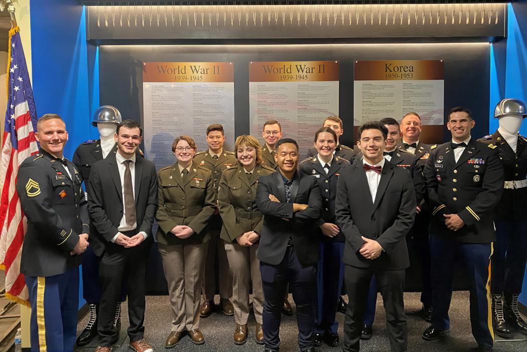 The GOLD (Guard Officer Leadership Development) Program Military students hosted their annual Dining Out formal dinner and program on April 13, 2023. The RSU GOLD students are solely responsible for organizing and planning this event. The Guest Speaker of the evening was RSU’s History and Political Science professor Dr. David Bath.