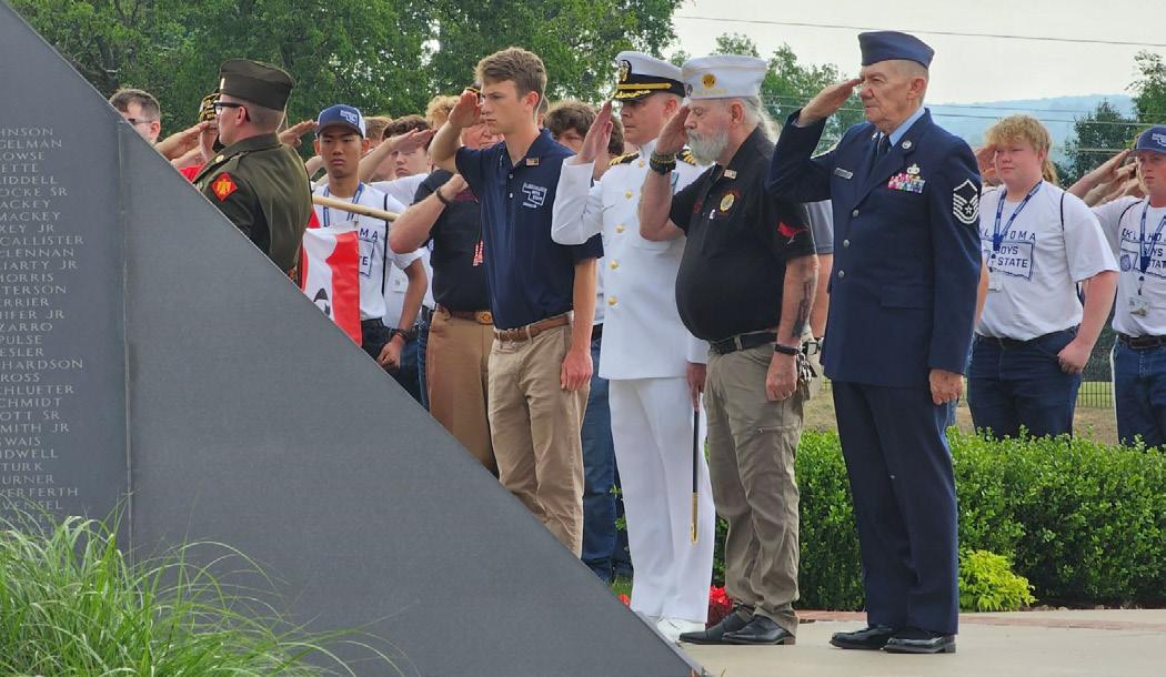 OMA Museum Curator, Dewey Wilson OMA Class of 1966, along with other local military personnel and veterans, the local American Legion and the 2023 Boys State delegates honor the men and women who sacrificed their lives while serving in the United States Military during Memorial Day services on “College Hill”.