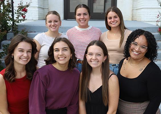 Rogers State University students in the new Dr. Larry Rice Community Leadership Fellows Program include Kaylee Biersdorfer (front, from left), Aubrey Haught, Jarreka Hurt, and Cambrey Harrison; Emma Kelley (back, from left), Madison York, and Delana King.