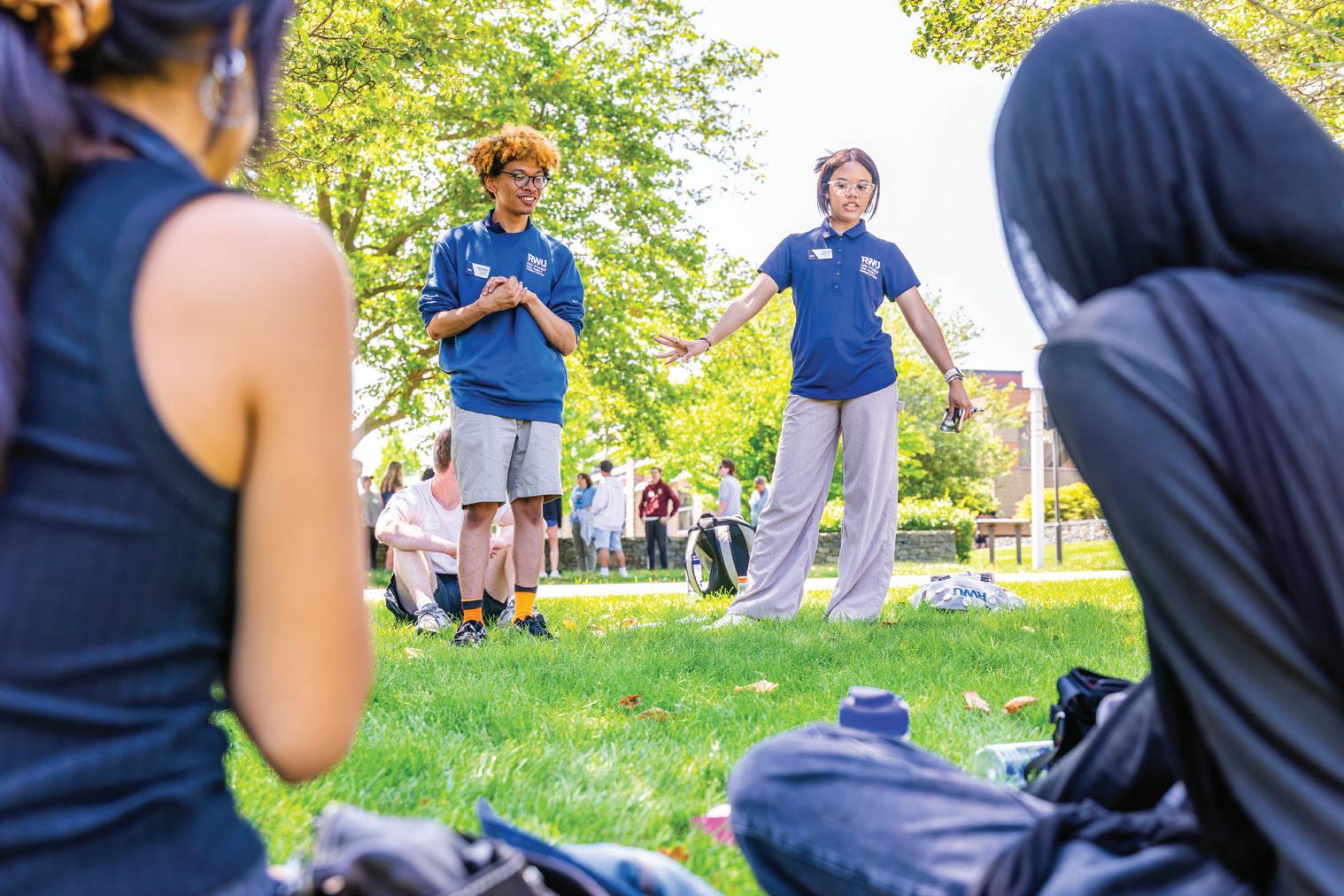 Hello Class of 2030, and on behalf of our New Student and Family Orientation team, welcome to Roger Williams University! Our team of thirty- ve Orientation Advisors are very excited to meet you, learn about your goals and aspirations for your college journey, and help you transition into being a member of our community. Orientation is the rst step in this process, where you’ll get to meet classmates and faculty, and learn about resources that will help you succeed at RWU.