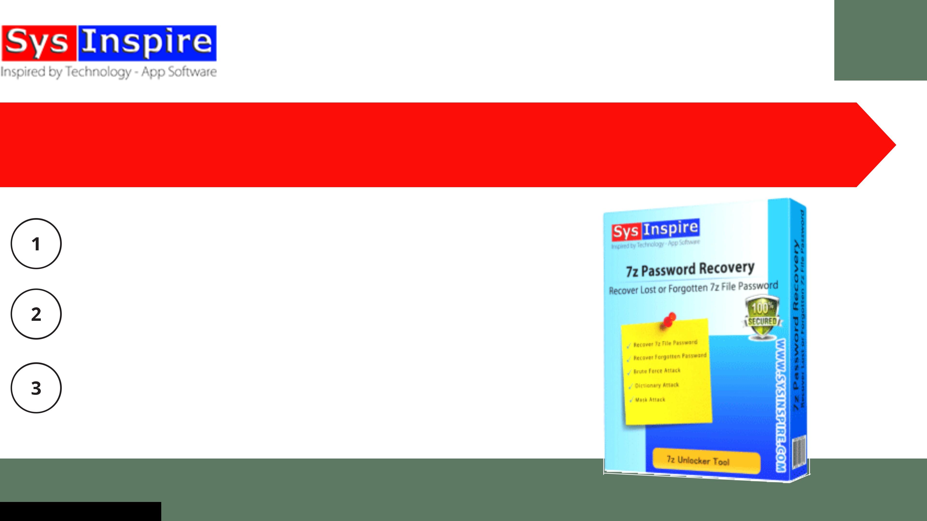 SysInspire 7z Password Recovery Software provides three Attacks to recover 7z file password: Brute Force Attack Mask Attack Dictionary Attack https://www.sysinspire.com/7z-password-recovery-software/
