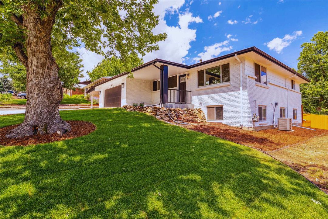 Step outside to the expansive covered patio, an ideal setting for al fresco dining or simply relaxing with friends under Colorado's clear skies The large lot provides plenty of space for outdoor activities, gardening, or just soaking up the sunshine The new exterior paint adds to the home’s curb appeal, making it stand out in this picturesque neighborhood
