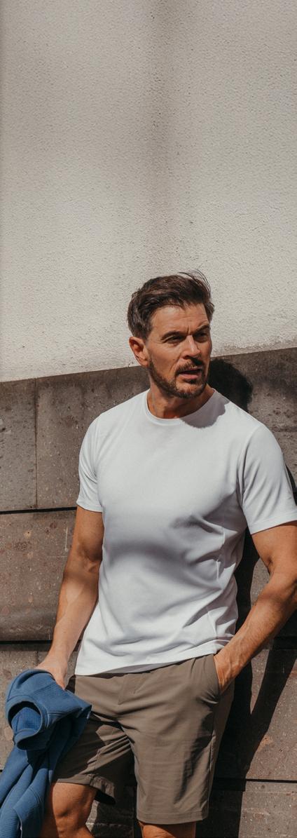 In the forest nestling your cabin for the weekend, a moisture-wicking performance t-shirt keeps you cool as you pace through an early morning run. Personal bests are shared over muesli and caffeine that fuel the journey ahead. A pre-booked adventure precedes a spontaneous bike ride, cycling confidently through a sudden shower as its droplets bounce off your waterproof jacket. The journey meets its end at a slow walk among the dunes, where new memories take shape as you watch the sun sink into the sand.