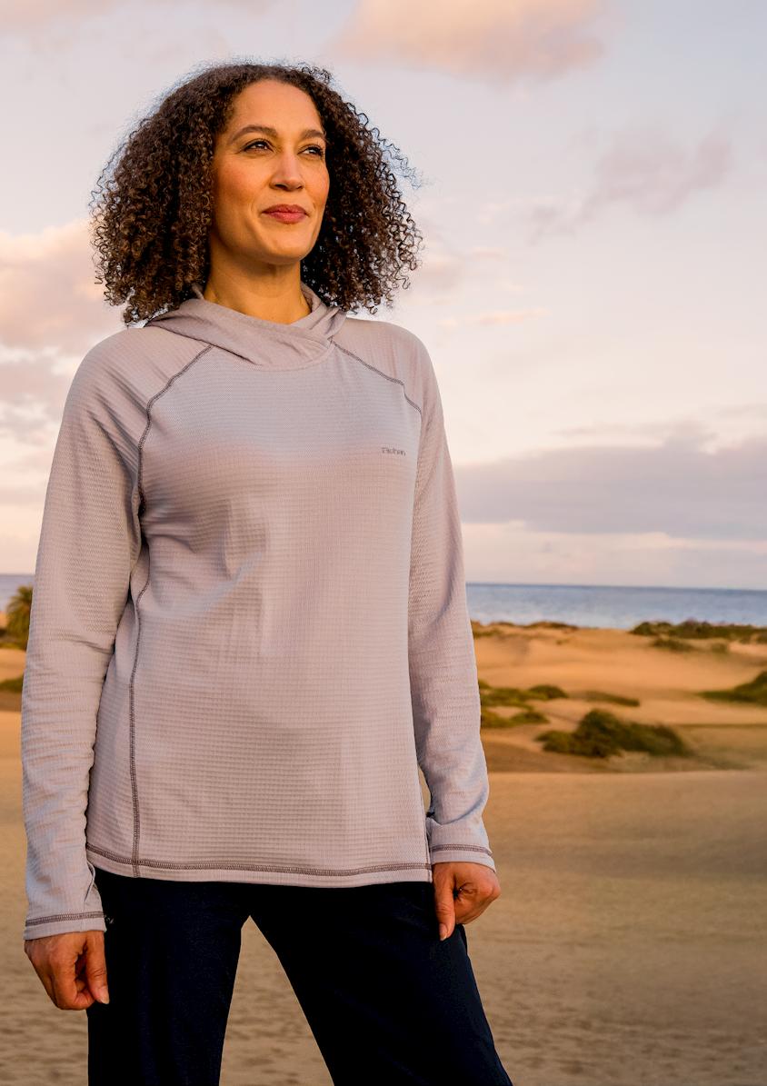 On walks, treks, and camping trips outdoors, this lightweight moisture wicking hoodie ensures breathability, while its Insect Shield® treatment and our UPF40+ sun protection technology offer protection against spring elements.