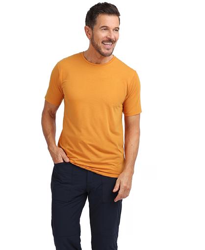 A comfortable, temperature-regulating short-sleeved T, ideal as a base layer on chilly mornings.