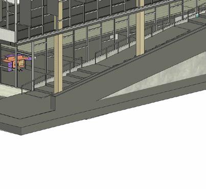 -Large exterior ramp/stairs design with generous landings on East side to welcome community.