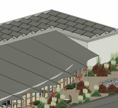 -Utilizing energy efficient and recyclable materials, such as polycarbonate panels, recycled steel, tensile, and green concrete.