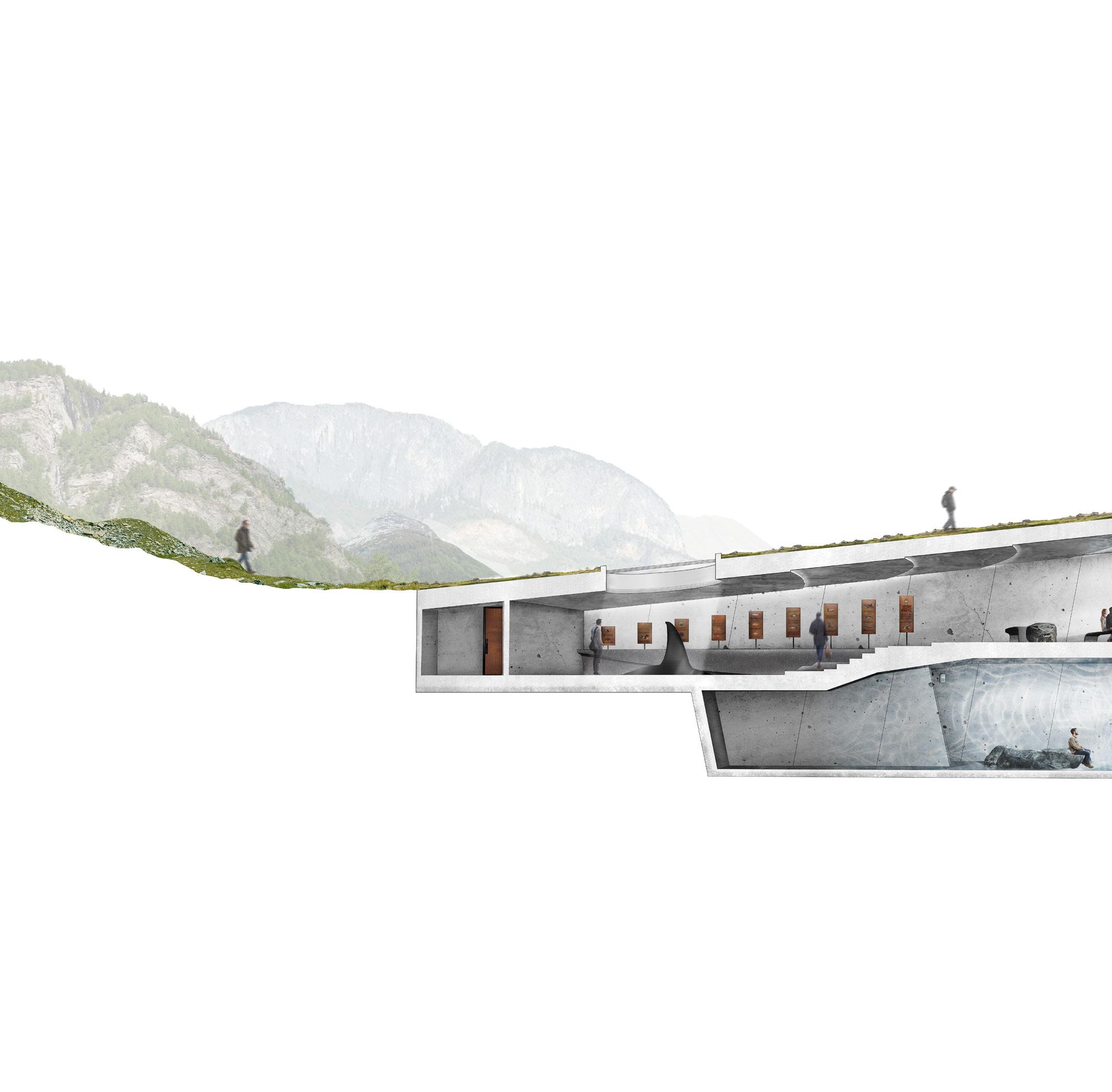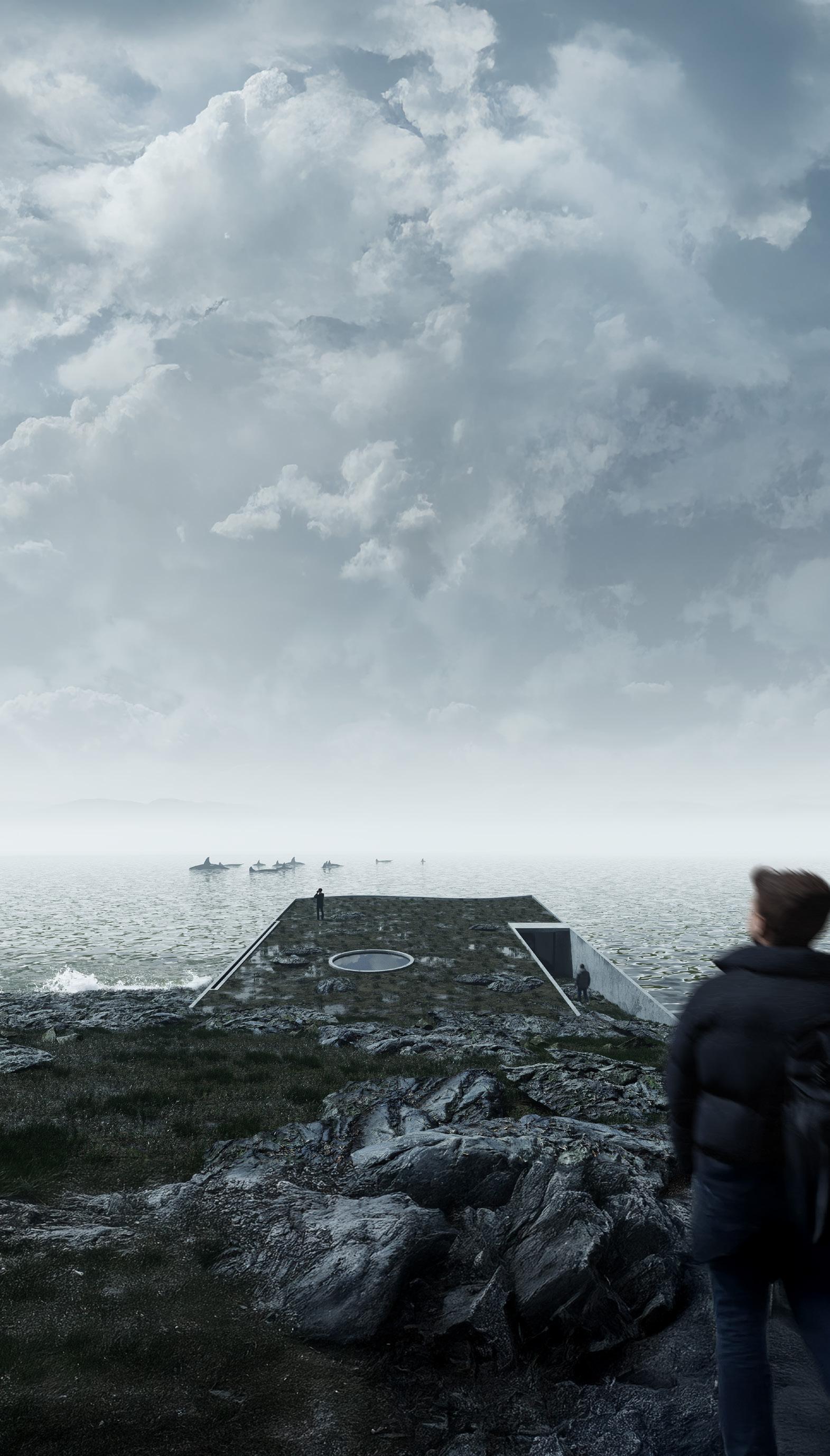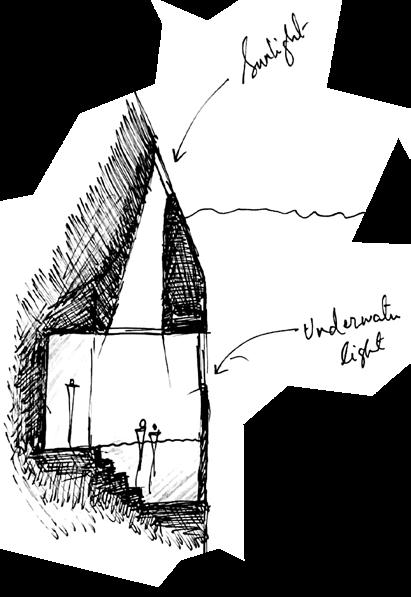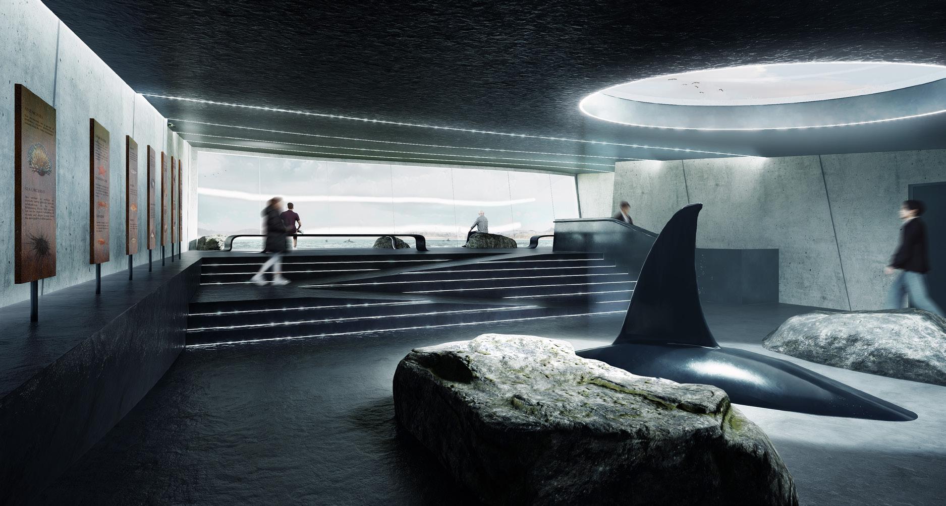 Resonance emerges as a harmonious dialogue between architecture and the ocean. Inspired by the undulating rhythm of waves, the structure’s curved glass facade reflects the fluidity of water, capturing light and movement. Stretching boldly into the sea, it forms a dynamic viewpoint, inviting visitors to immerse themselves in the vastness of the horizon. The walkable roof, interactive and sculpted like rolling tides, offers a tactile connection to the environment. Inside, an information space educates visitors about marine life, while seating flows organically from the ground, mimicking waves and integrating natural rock formations. The structure is crafted from concrete for its durability and ability to withstand the harsh marine environment, grounding the design in strength and permanence. Below the surface, an underwater haven reveals the ocean’s symphony through a hydrophone system integrated as a surround system, amplifying its vibrant, unseen life .