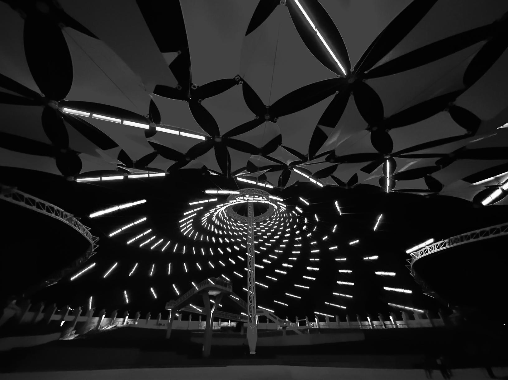 During my time at WSU, my classmates and I decided to take a trip to Spokane, WA to the famous Spokane Pavilion. The sun set and the light show started. During this time, I captured the lights forming this beautiful pattern from the inside.