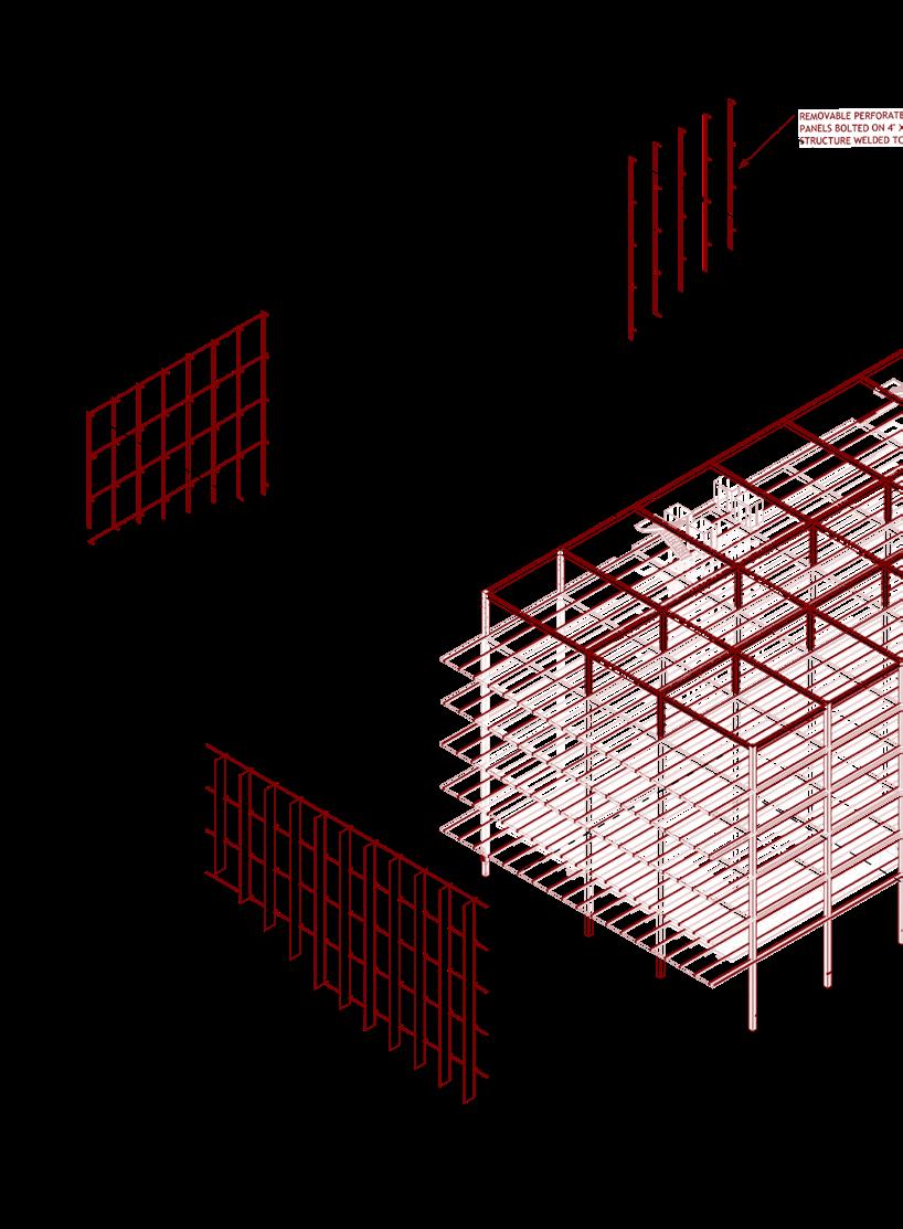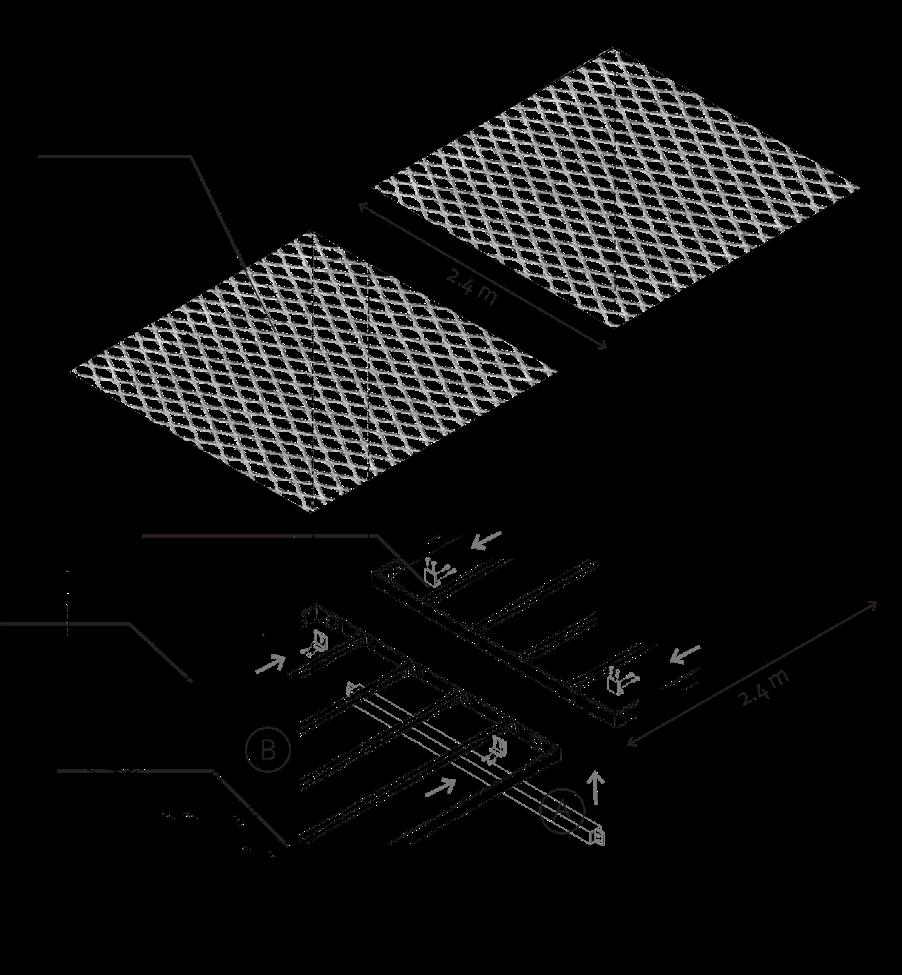 REMOVABLE PERFORATED ALUMINIUM PANELS ON 4” X 4” STEEL STRUCTURE WELDED TO THE FLOOR