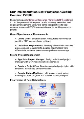 Implementing an Enterprise Resource Planning (ERP) system is a complex process that requires careful planning, execution, and ongoing management. Below are some best practices to help ensure a successful ERP implementation while avoiding common pitfalls: