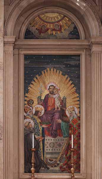 The mosaics of St Anthony of Padua and jesus with the youthful saints Maria Goretti, Agnes, Don Savio, and Lucy will be relocated from the nave to the auditorium as models of lives offered completely in service to God.