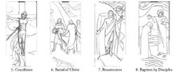 Panel 4 - Life of Mary: Jesus meets His Mother, Jesus dies on the Cross, Jesus is taken down from the Cross