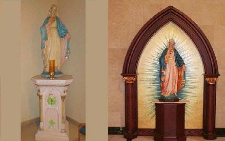 • Our artists also restored plaster statues of the Blessed Mother and St. Joseph that were in the back of the chapel, and created gold-leafed wood devotional niches for them.